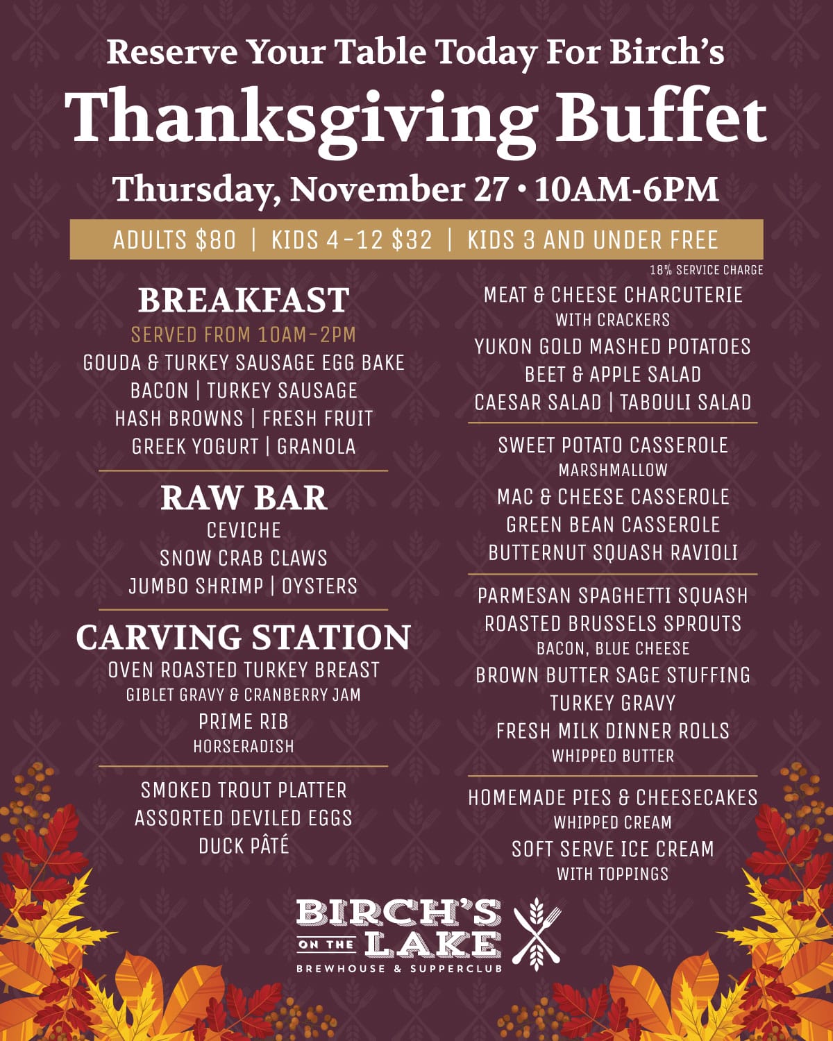 Birch’s Black Friday gift card special is back! Buy $100 in gift cards and get $50 free bonus card with a minimum $15 purchase on Black Friday, November 28th in store only 10am-10pm at Birch’s on the Lake. (Bonus cards valid Jan 1st – Mar 31st, 2026)