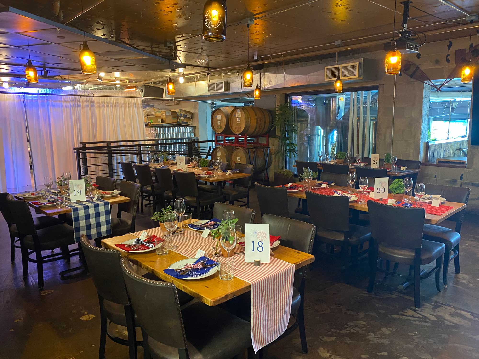 The Brewhouse includes the Full Brewery Bar, Barrel House Lounge and Boathouse space with beautiful views of Long Lake. The Boathouse and Lounge areas can be booked individually for events from 20-60. A full Brewhouse Buyout includes all the spaces and also a full stage set up with options for a dance floor, projector & big screen, AV set up with seated dining or passed appetizer and / or food station options.