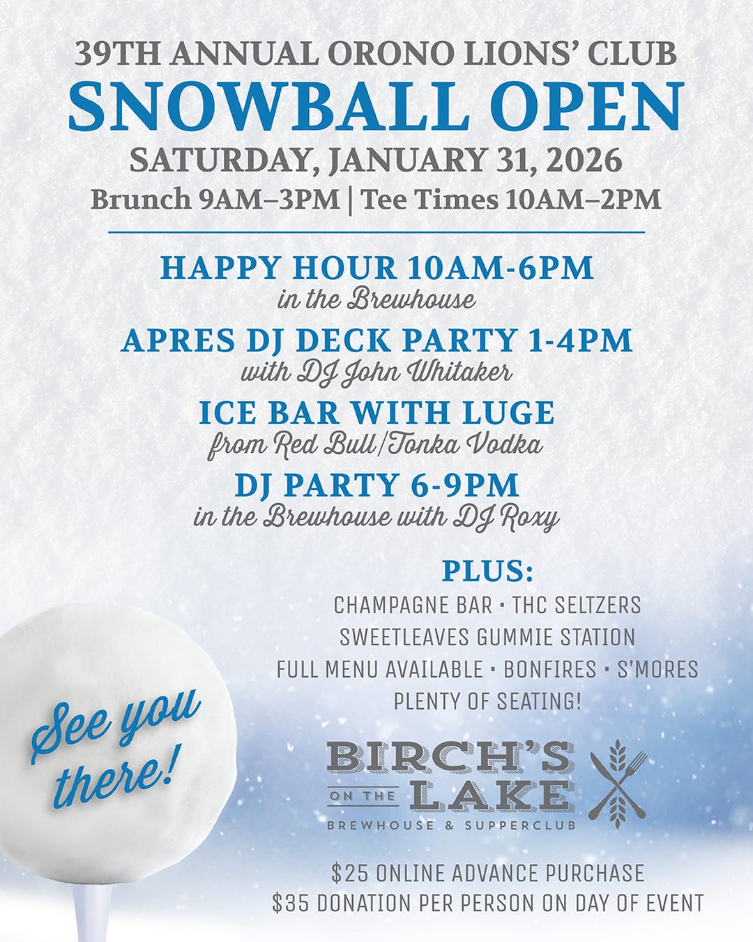 The 39th Annual Orono Lions’ Club Snowball Open is set for Sat Jan 31st, 2026!